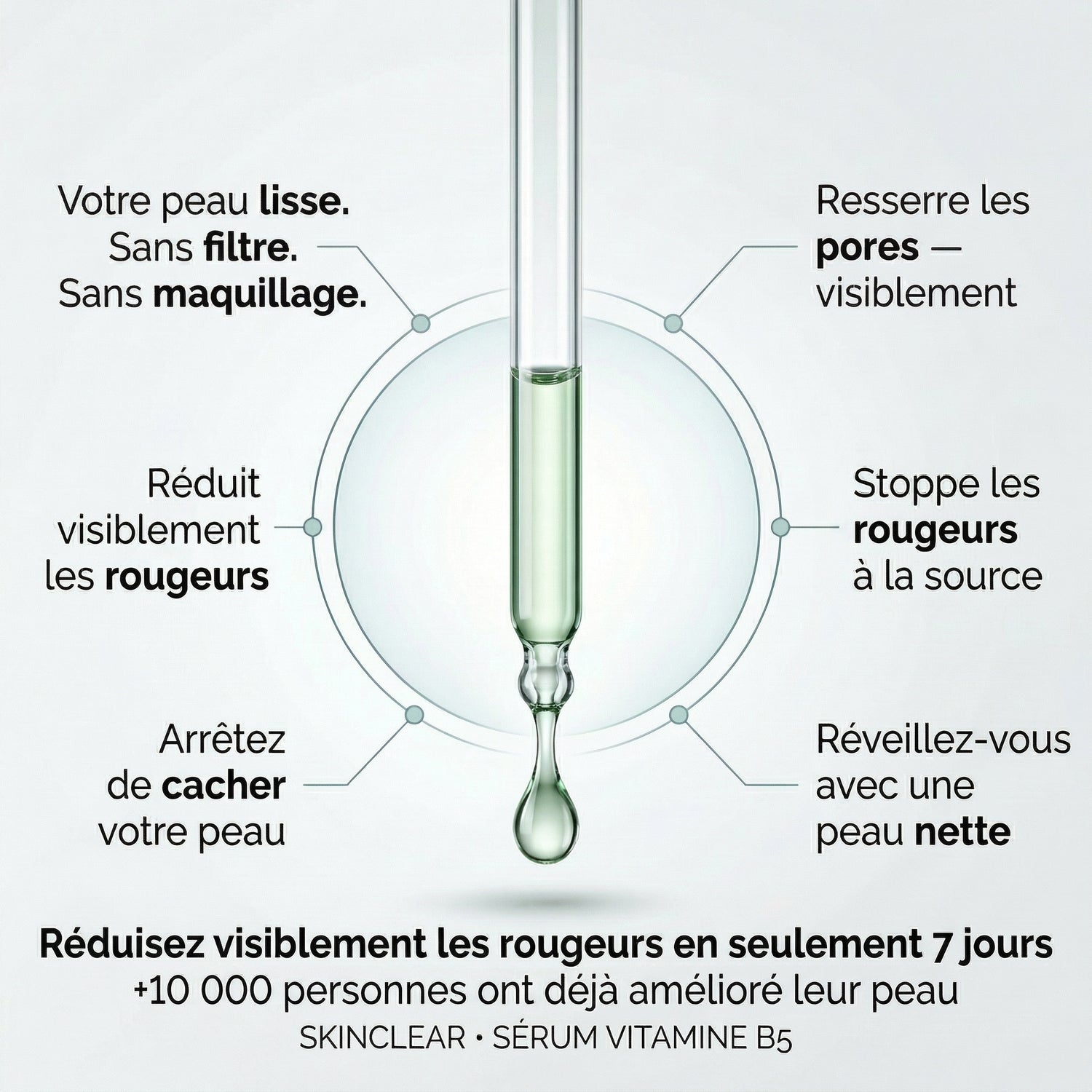 Ce que nous vous promettons, c'est la science. Notre sérum a été développé main dans la main avec des dermatologues, avec une seule mission : réduire visiblement vos rougeurs et redonner à votre peau son éclat naturel, durablement.
